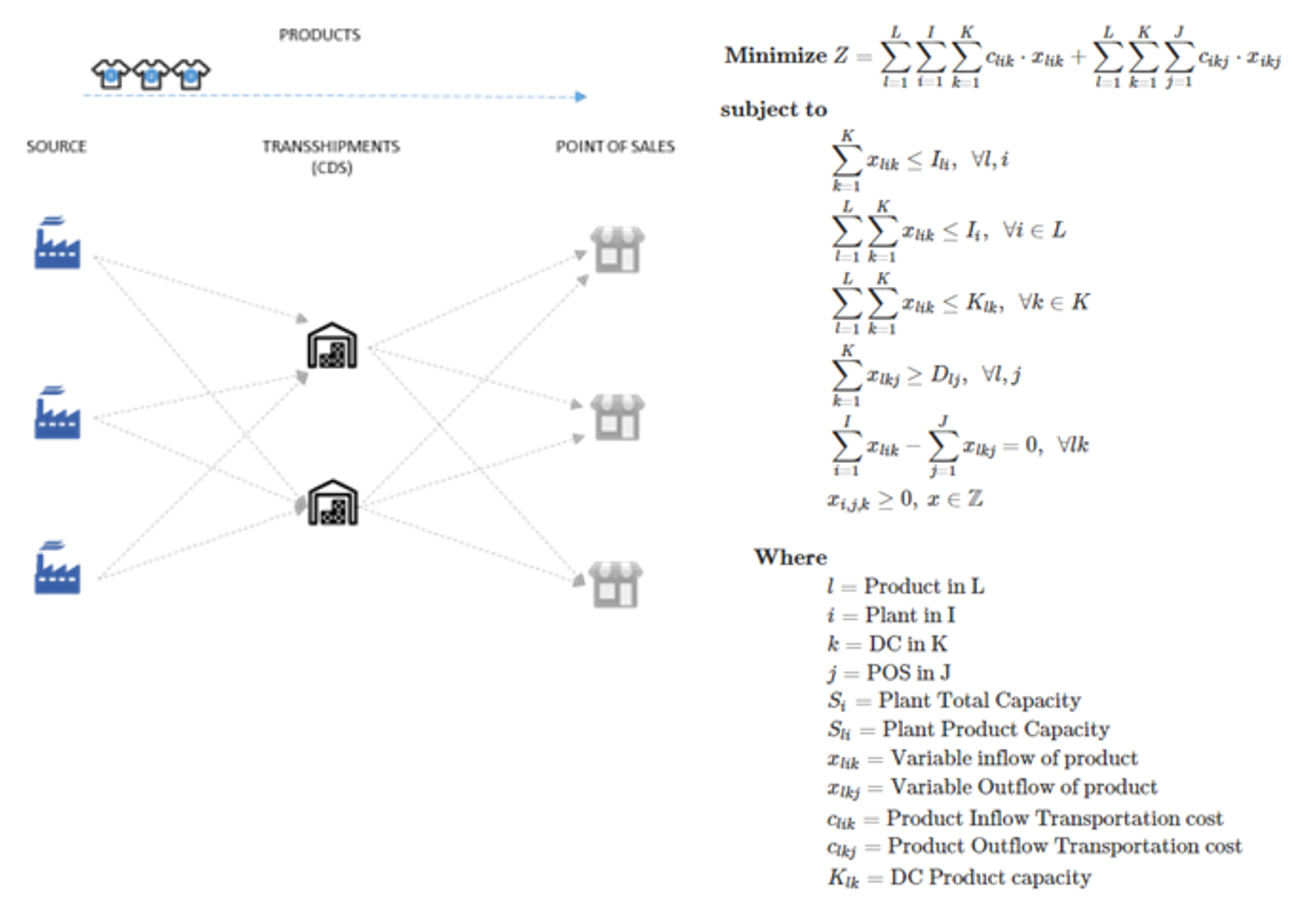 Let’s start by presenting a very traditional supply chain design problem as the multiple-commodity transshipment problem.