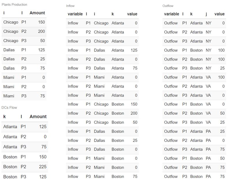 In this problem, you minimize the total cost of fulfilling the demand for a set of products at each point of sales, while sharing capacity constraints on plants and distribution centers.